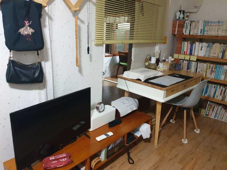 책으로 가득찬 내공간, 작은tv와 책상으로 나만의 공간인 작은 거실♡