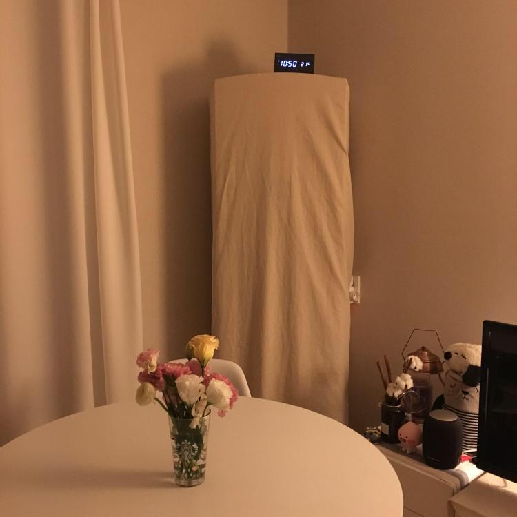 동생이랑 같이 사느라 옷 수납이 부족해서 티비 옆에는 두닷 서랍장을 두고 사용하고 있어요. 서랍장 위에는 악세사리와 스팀다리미 등을 올려두었습니다!