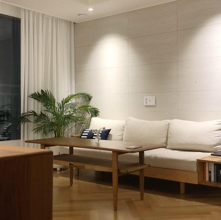 거실 가구를 옮겨봤어요. 아트월 쪽으로 소파를 옮기기만 했는데 분위기가 달라지더라구요.