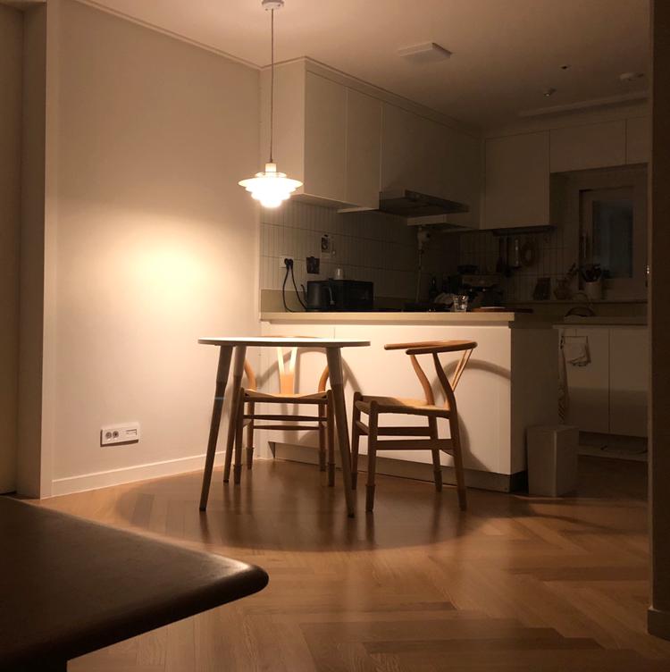 은은한걸 좋아해서 밤엔 이렇게 식탁등만 켜놓고 있어요.