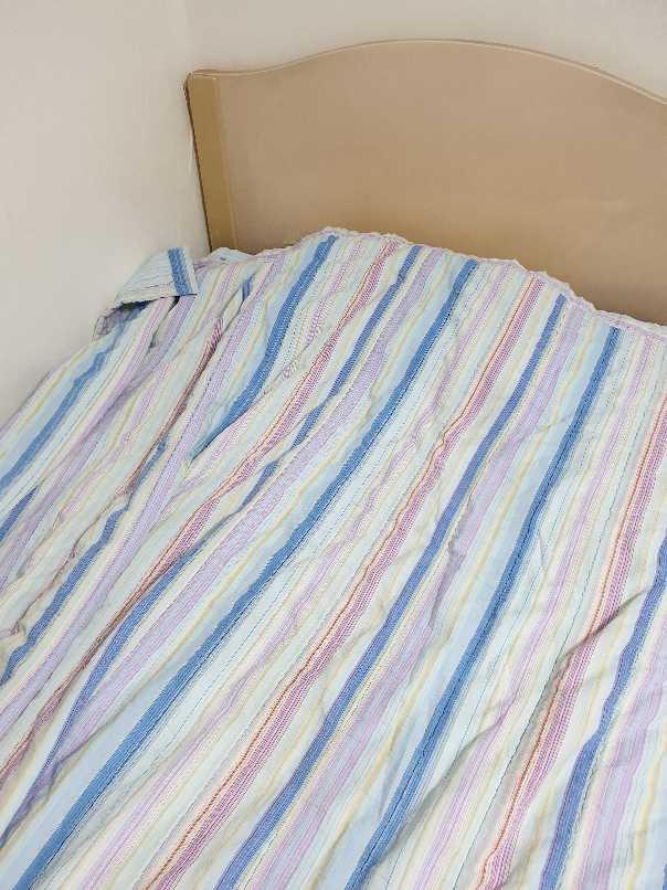 방 침실 침대입니다. 아직 여름용 이불 사용중이네요.