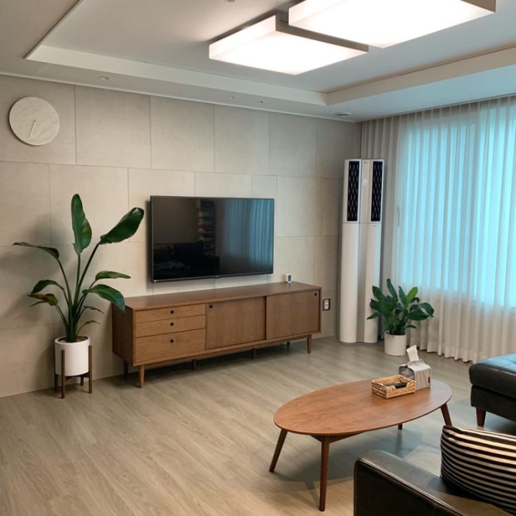 원목 가구와 식물로 따뜻한 느낌의 거실:)