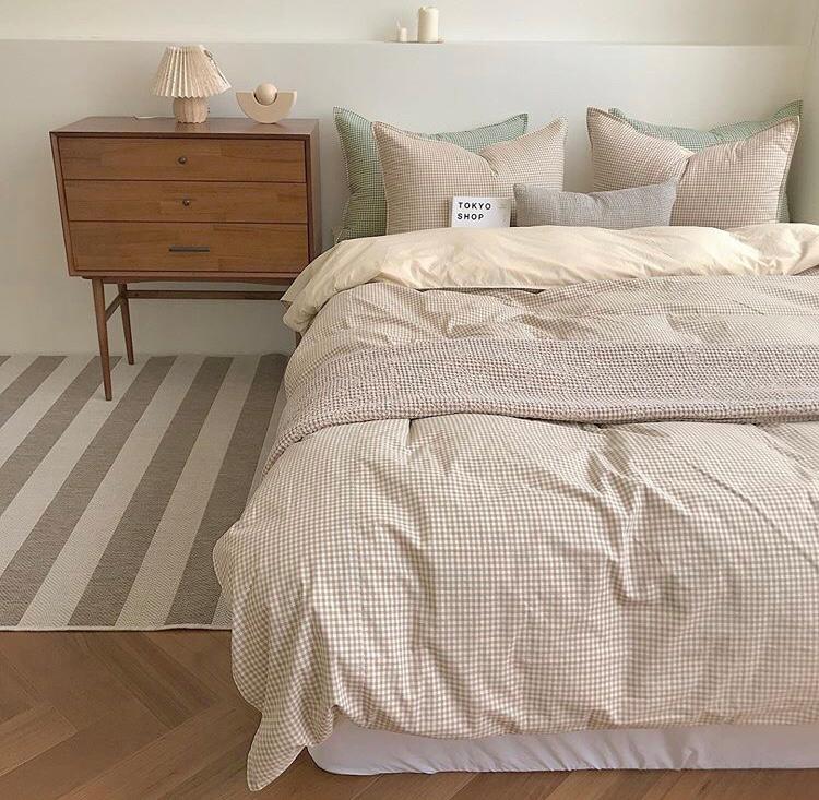 저희집 침실인테리어에요 체크침구 브랜드는.쉐어룸 입미다~