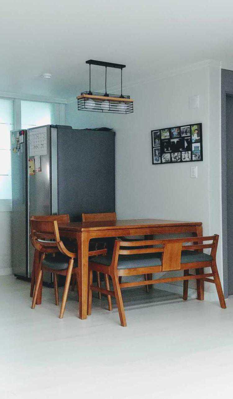 화이트와 그레이 톤에 부드러움과 따뜻함을 주기 위해서 가구들은 브라운 계열을 놨어요^^ 포인트로 의자 쿠션들도 깔맞춤으로 그레이톤으로.. 전등도 식탁과 함께 나무결로 매칭!! 괜찮나요? ^^