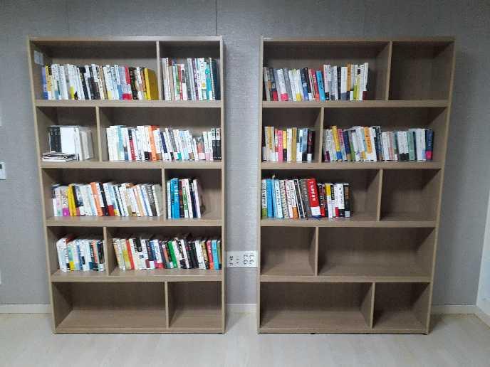책장 조립 후 집에 있는 책 일부를 넣어봤어요
