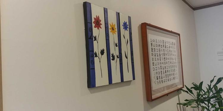 거실벽이예요. 소소한 액자가 포인트