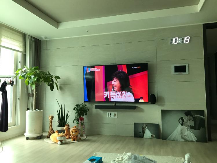 신혼집 거실로 화분과 바닥에는 액자로 디스플레이했어요