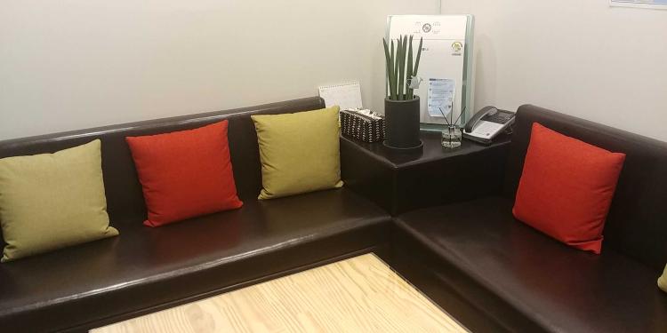 쇼파 옆의 공기청정기입니다