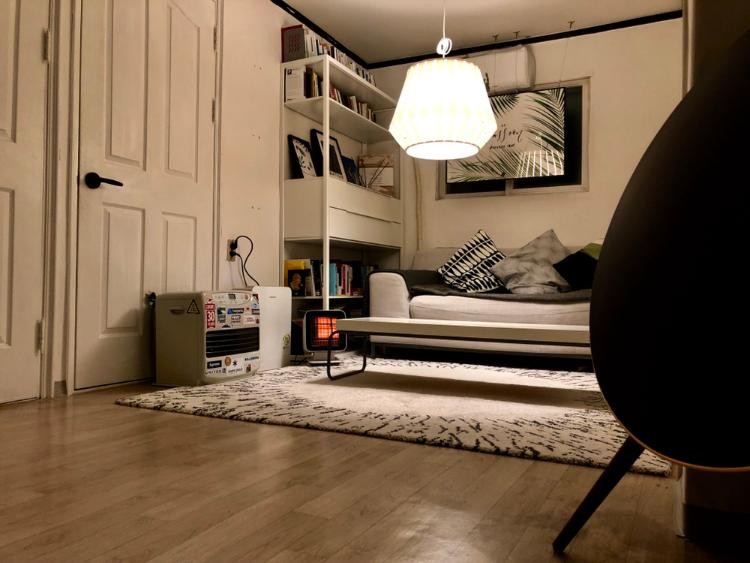 기와지붕 아래 농가주택 거실입니다 우풍이 너무 심해서