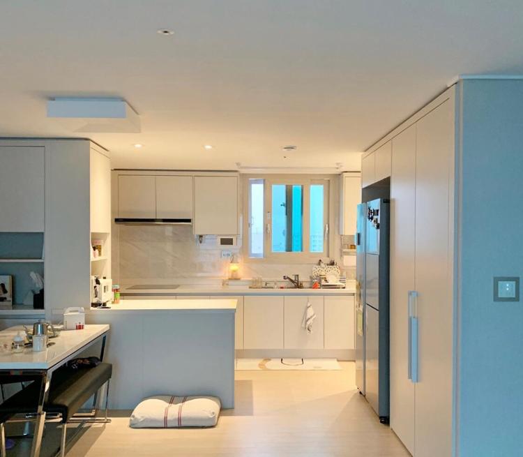 올 화이트로 깔끔하게 꾸민 주방잉에요