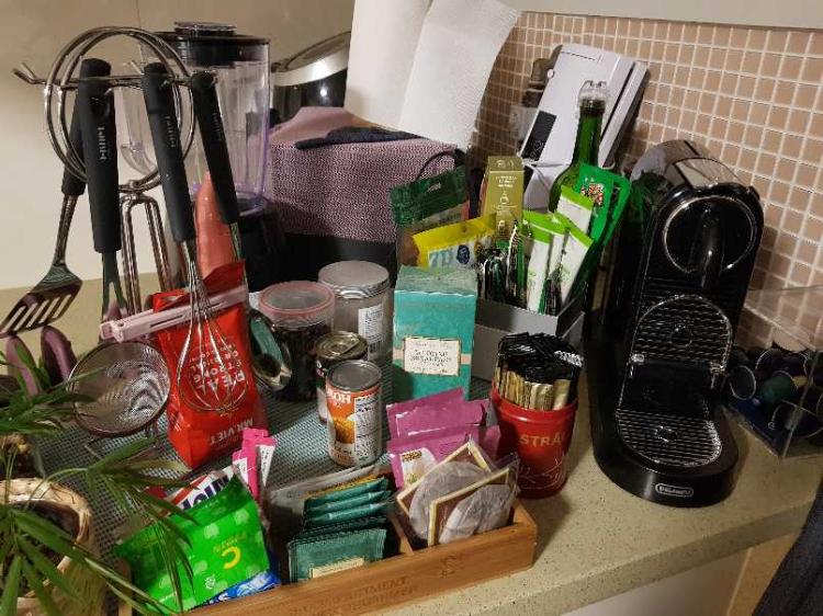 주방 아일랜드 식탁이이예요. 커피, 티, 홍차, 간식거리, 네스프레소등 부부 티타임 할때 써요~