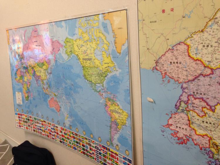 아이를 위해 거실에 지도를 붙였어요