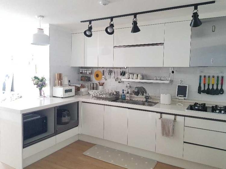 평수에 비해 ㄱ자로 널직하게 빠져서 조리공간도 충분한 편이에요