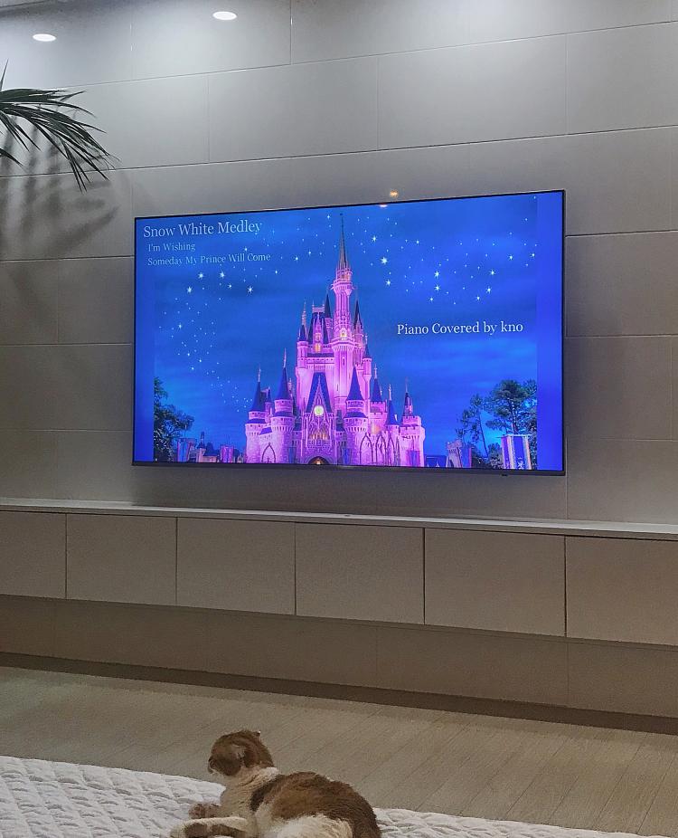 거실이예요. 깔끔한 거실장으로 은은하게 포인트를 주었어요.