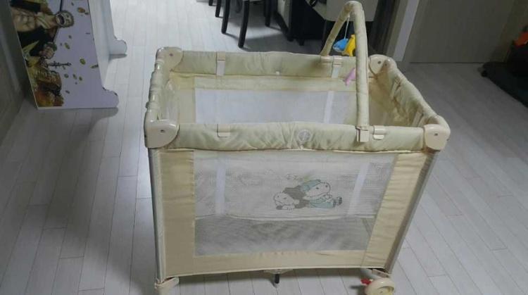 거실에 놓은 아기침대입니다