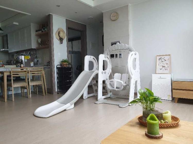 아기를 위한 미끄럼틀로 채워진 거실공간