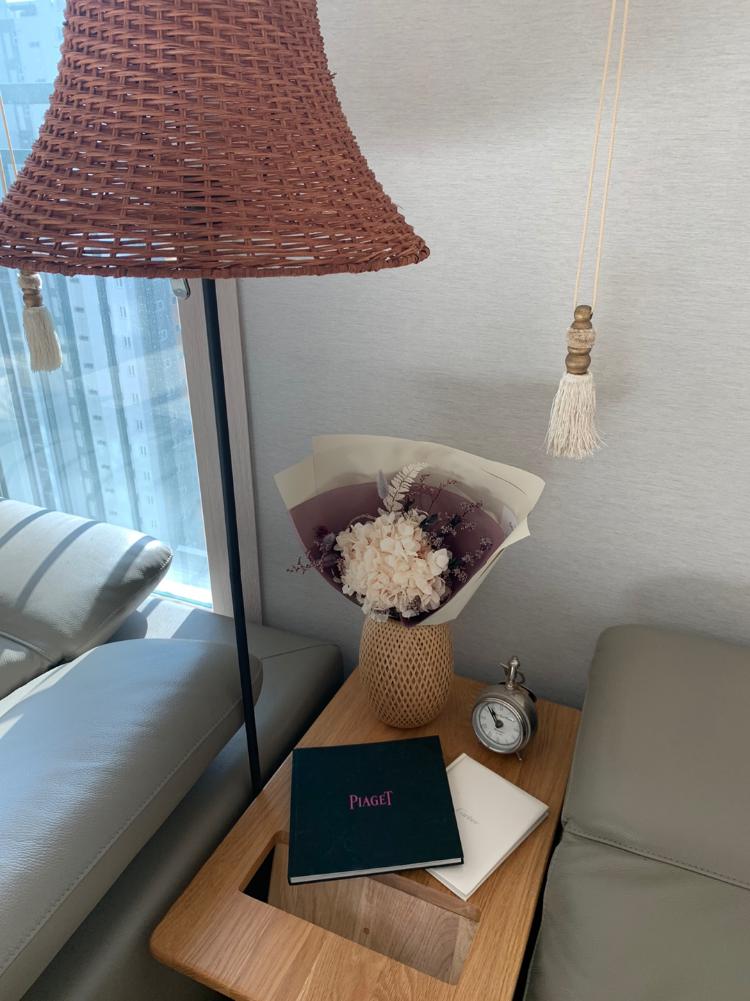 거실 협탁은 소품으로 아기자기하게 꾸며봤어요.