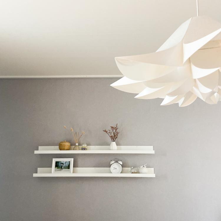 침실 벽 한 켠엔 이렇게 선반을 걸어두었어요.