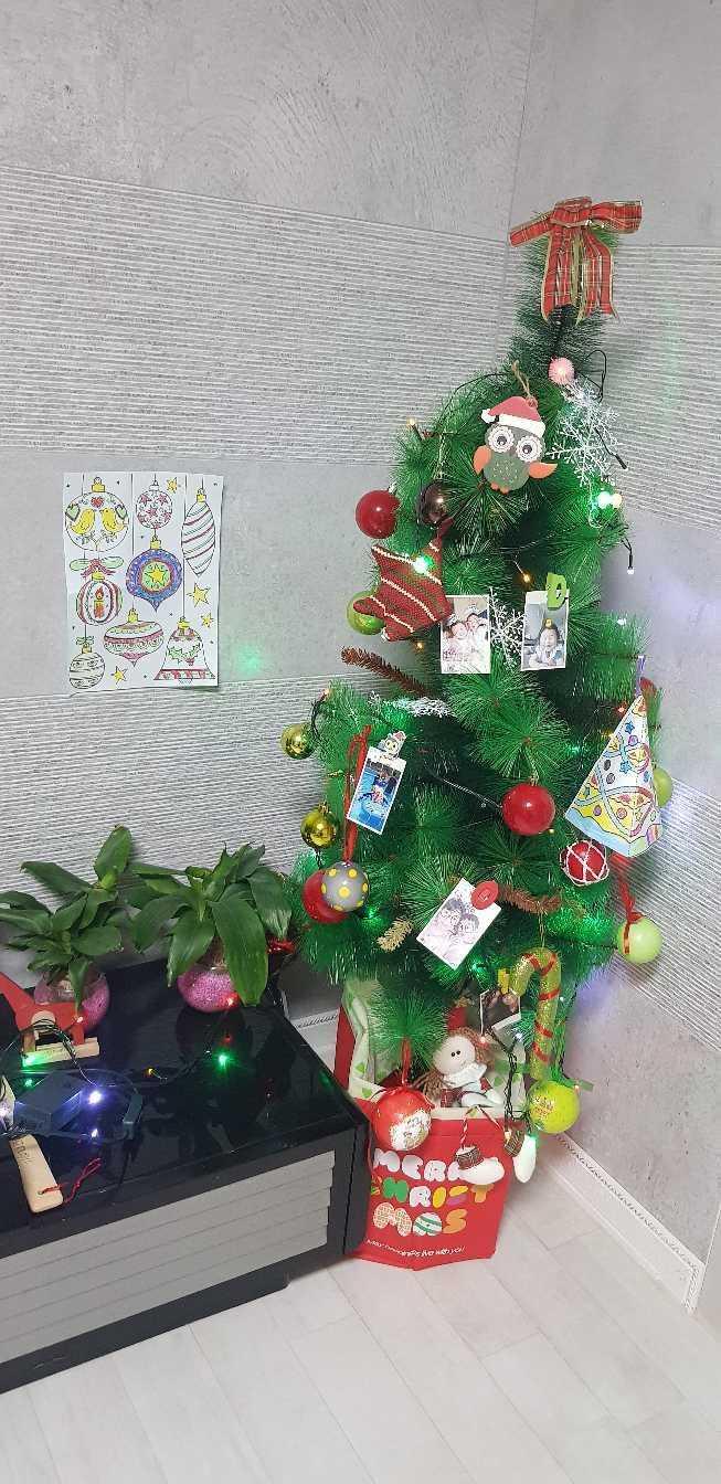 거실한쪽에 꾸며본 트리예요 사진이랑 아이들이 유치원에서 만들어온 작품도 같이 꾸몄어요^^