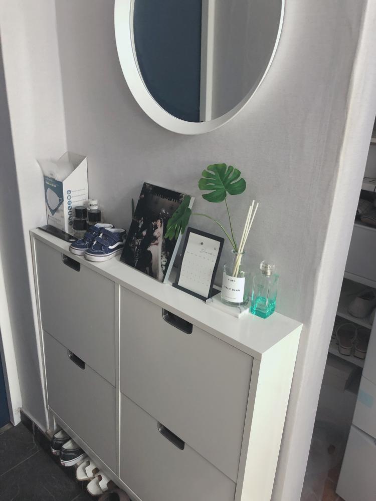 저희집 현관이에요~ 이케아에서 신발장을 구입해다 설치했어요~인테리어를 해치지 않으니 넘 좋더라구요~