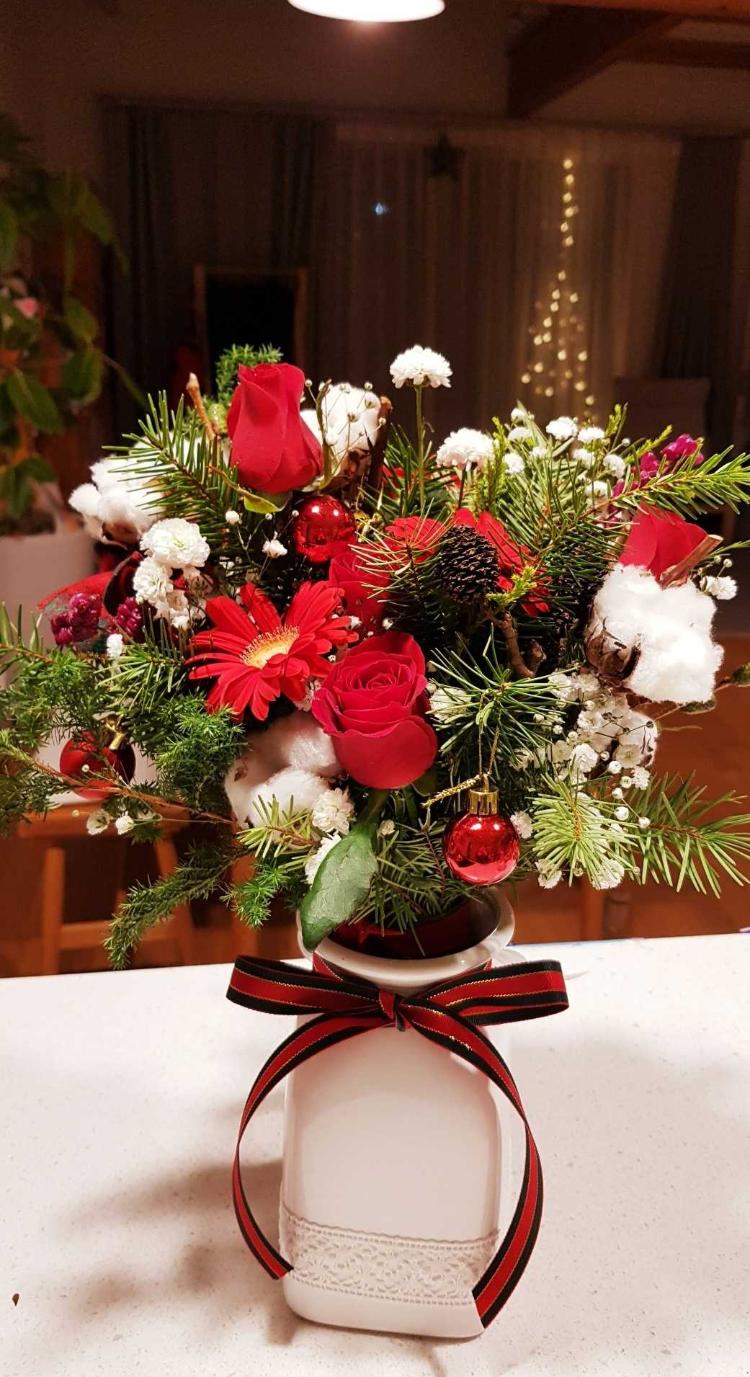 크리스마스 분위기 나는 꽃과 조명 단 두가지로 연말 분위기를 내보았어요