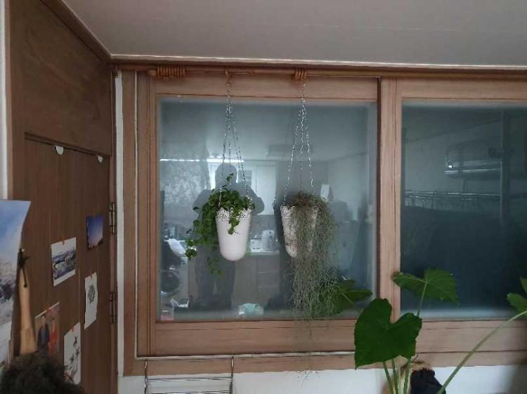 창고 문에 엽서, 행잉 식물 걸이화분에 담았어요