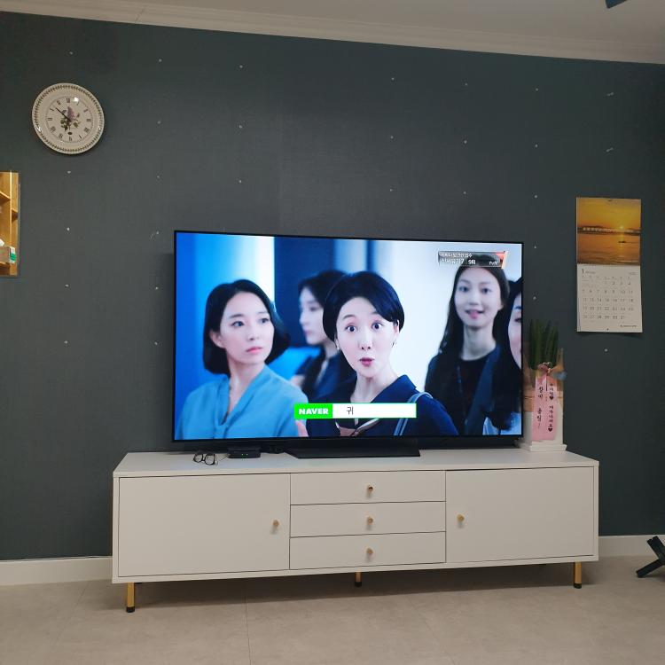 하얀거실장위에 엘지올레드 티비입니당!😊