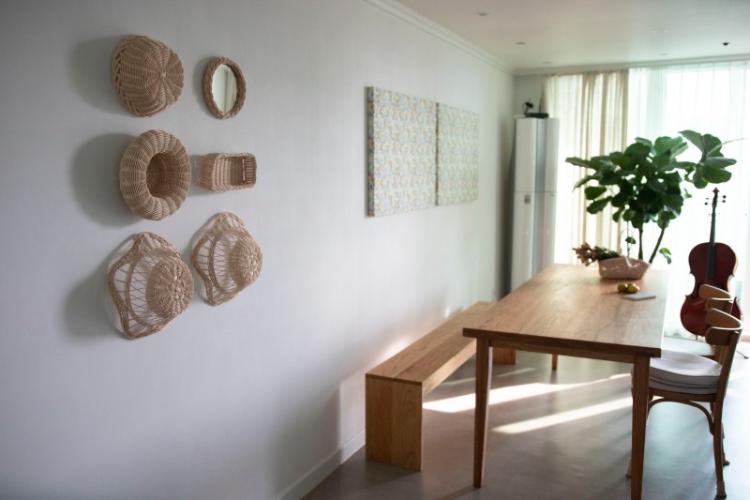 직접 만든 라탄 소품을 벽에 걸어두었습니다:)