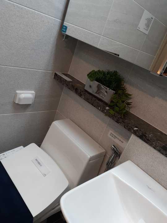 요번에 새로 리모델링한 변기와 세면대예요