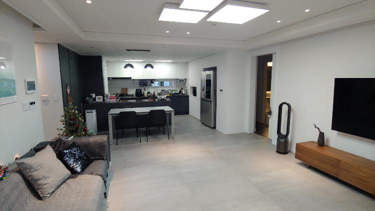 너무 미니멀이었던 거실과 주방에 살림을 좀 들였습니다. 바닥은 포세린타일입니다