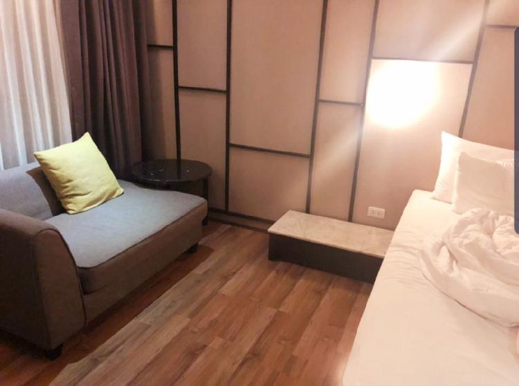 일인용 푸근한 쇼파와 백색의 이불을 교미한 침대