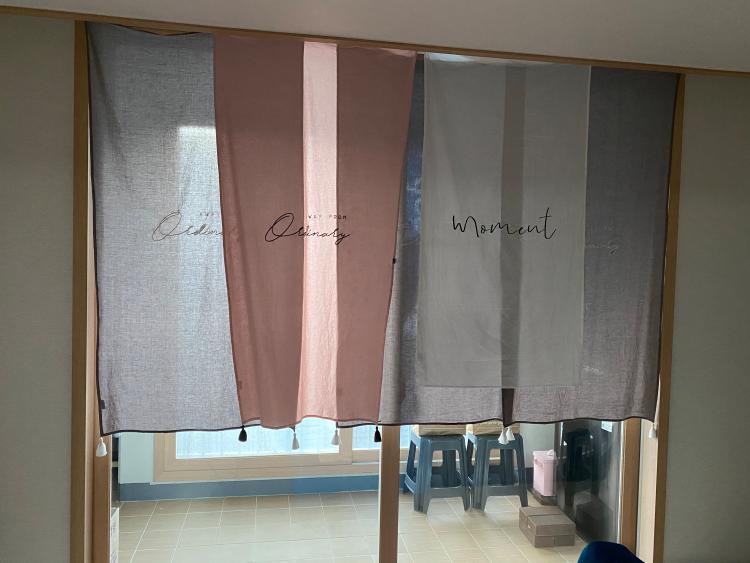 우리집 거실. 커튼대신. 천을 사용하여 고정햇습니다. 못 자국 안 생기게 할려구요 ㅎㅎ. 햇살이 잘 들어와요