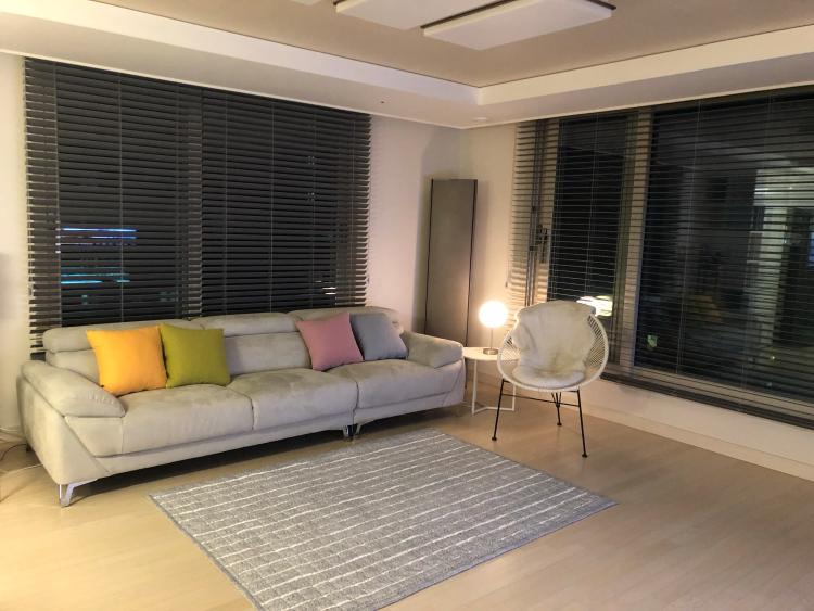 조명을 켜니 거실이 따뜻해 보여요~❤️