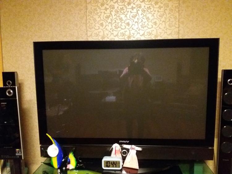 거실에 설치 되어 있는 Tv와 스피크,tv 장식대입니다. 고장났어 고치고 싶습니다.