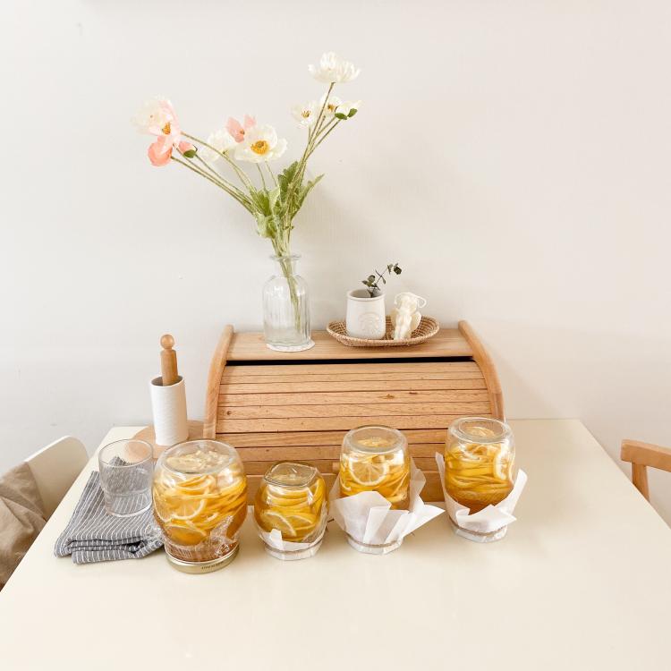 레몬청을 만들어서 숙성중인 식탁이에요. ㅎㅎ