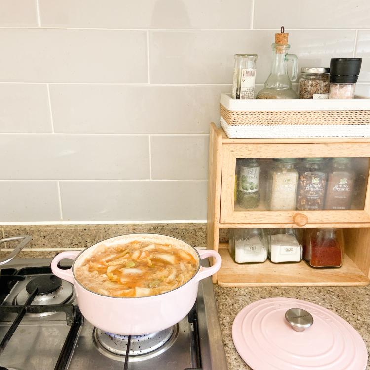 가스렌지와 양념통이 있는 곳이에요. 얼마 전에 국 끓이면서 찍어봤네용