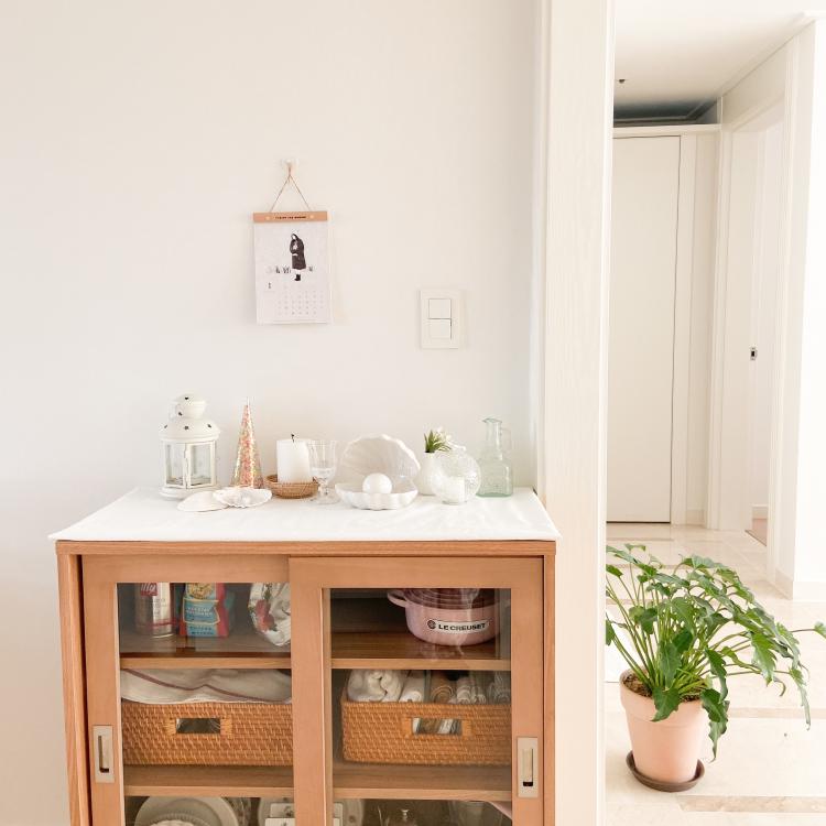 주방 한 쪽 벽엔 그릇장과 예쁜 소품들을 올려두었어요.