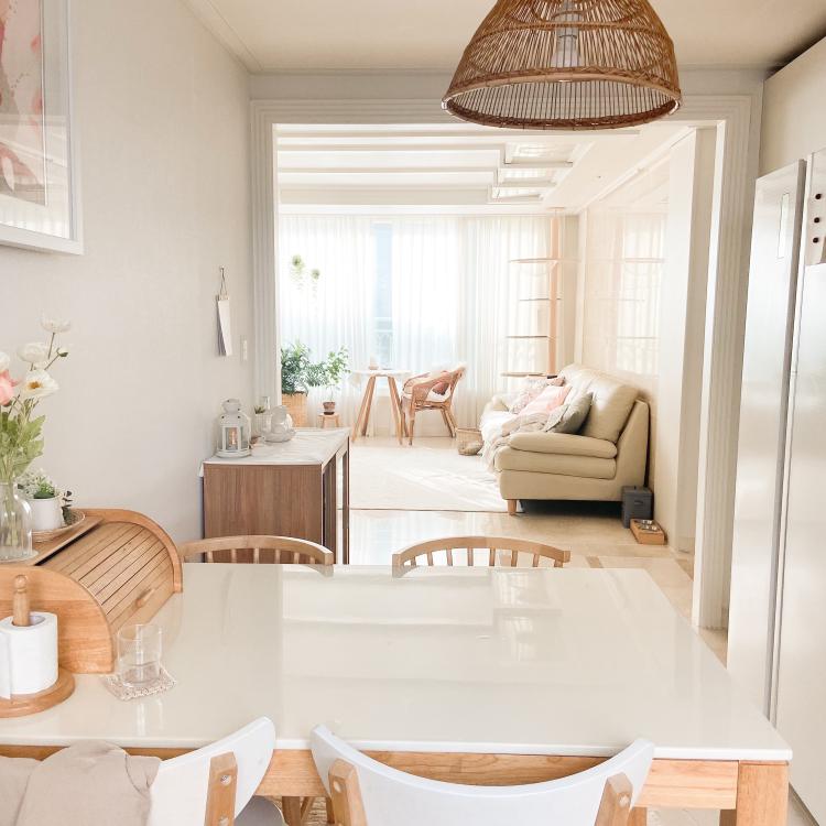 주방에서 바라보는 거실 모습이에요. 제가 우리 집에서 가장 좋아하는 뷰에요. :)
