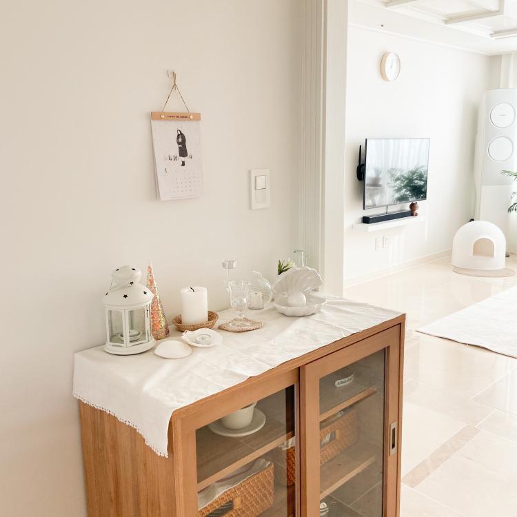 비슷한 색감과 톤의 소품들로 있는듯 없는듯 깔끔하지만 포인트를 주고 싶었어요! :)