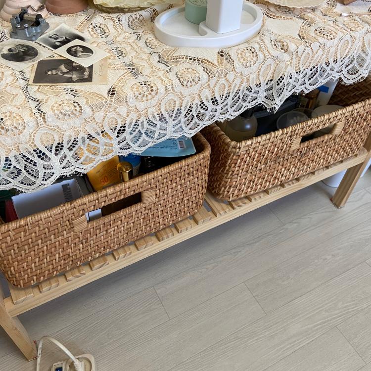 라탄바구니와 원목선반 조합!