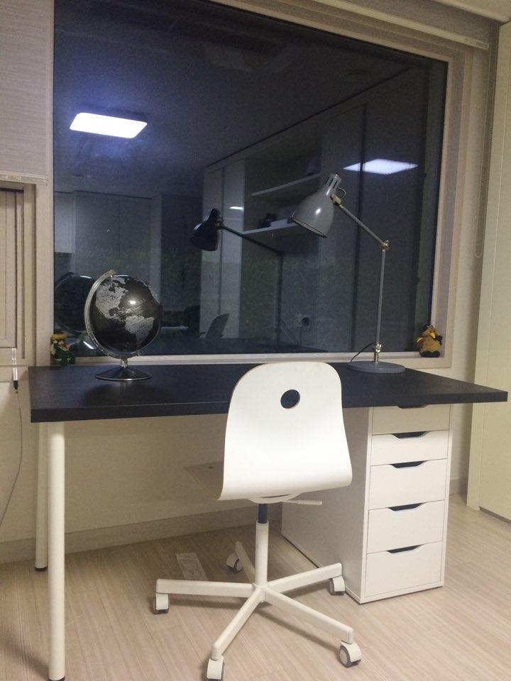 거실인테리어 사무도 볼수있게 의자와 책상,스탠드등으로 꾸며봤어요.