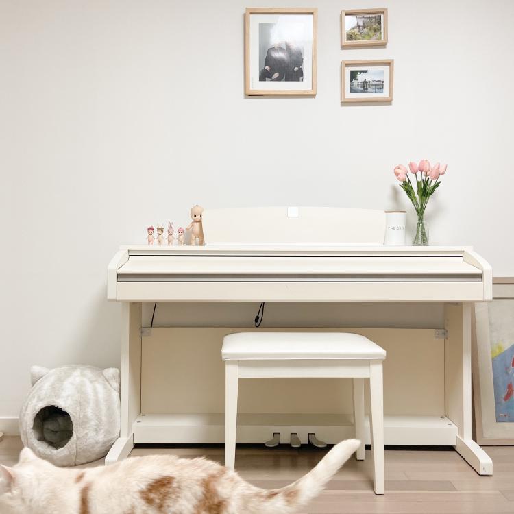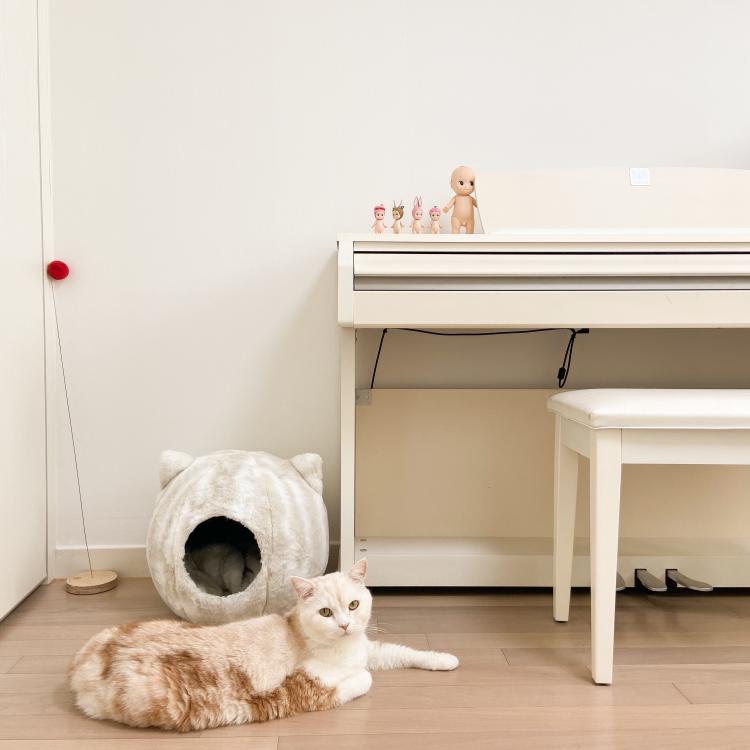 서재의 피아노가 있는 공간이에요. 고양이 라떼가 애용하는 장소이기도 해요. :)