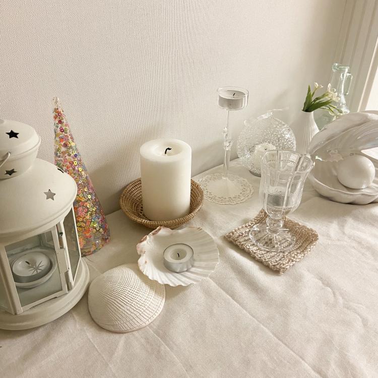 주로 톤이 비슷한 캔들이랑 작은 조명, 소품들을 올려두었어요.