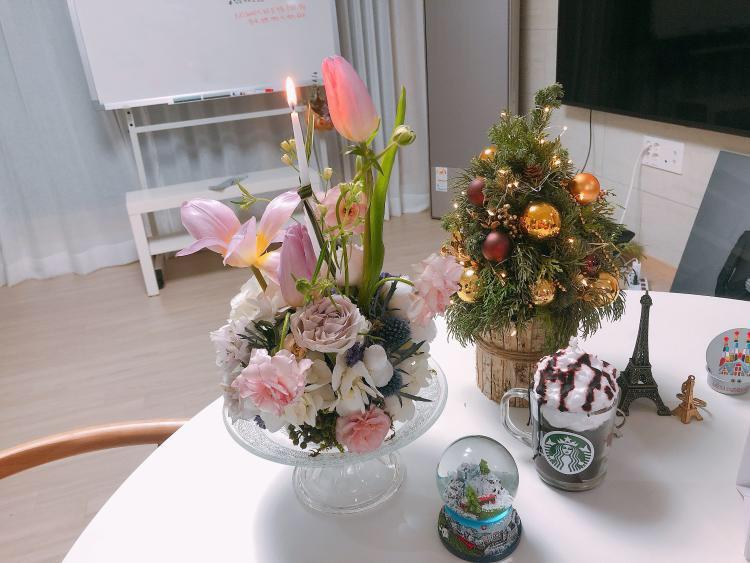 제가 만든 생화로 거실 테이블 장식해봤어요!