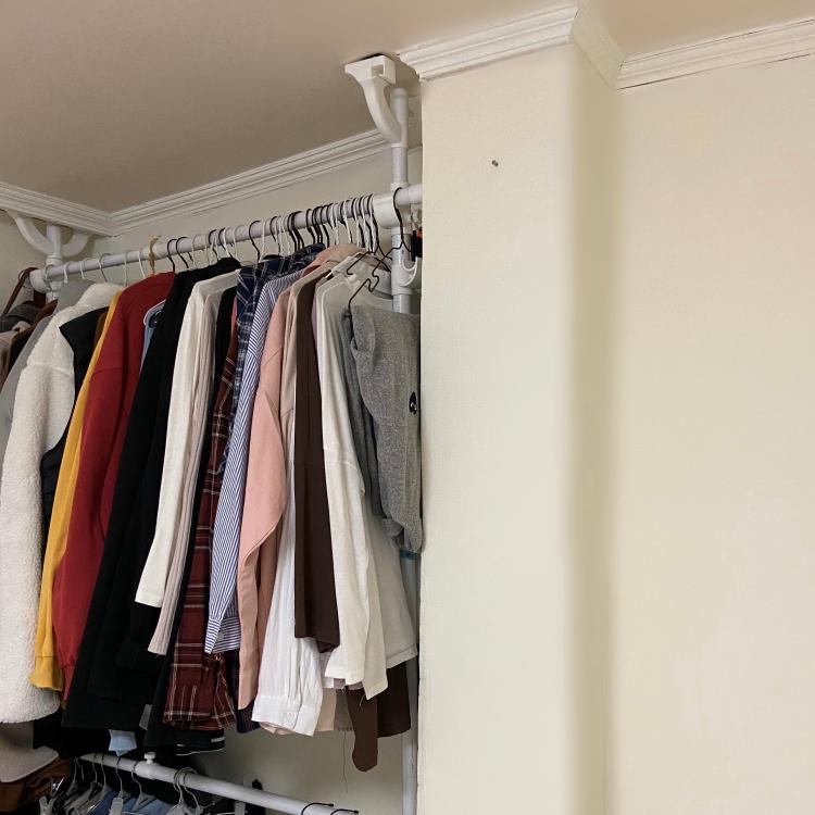 중간 벽 기둥 때문에 생긴 짜투리 공간활용을 위해 행거를 설치했습니다~