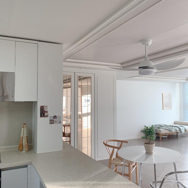 요리와 살림을 좋아하는 제가 하루 중 가장 오래 머무는 주방공간에서 바라보는 거실이에요
