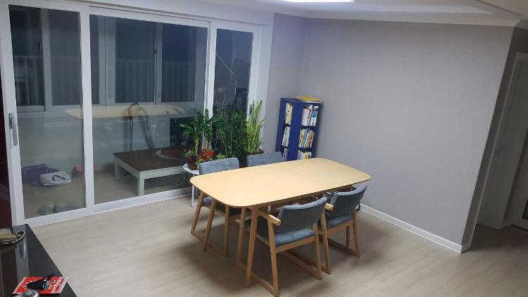 거실에 쇼파를 없애고 독서 테이블과 회전형 책장 놓았습니다