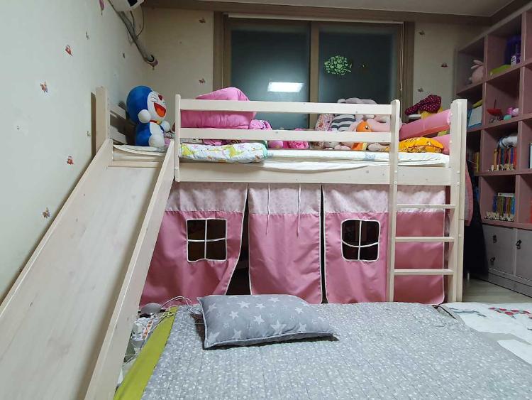 이쁜핑크에 미끄럼틀 2층 침대.