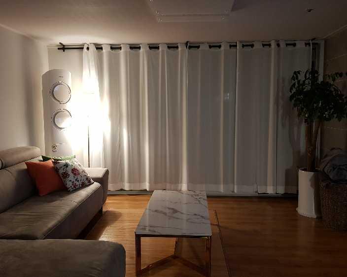 칙칙했던 암막커튼 쓰다 쉬폰커튼으로 바꿨는데 집안 분위기도 화사하고 적당한 비침이 좋더라구요