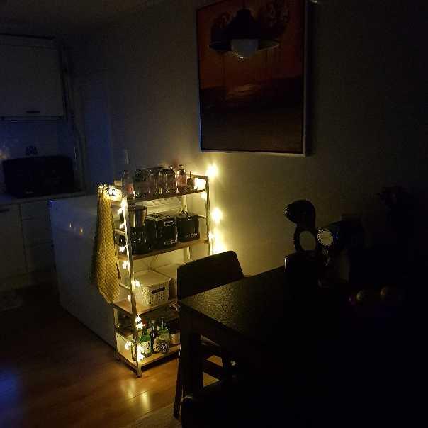 선반으로 김치냉장고를 가려주고 홈카페 만들었어요